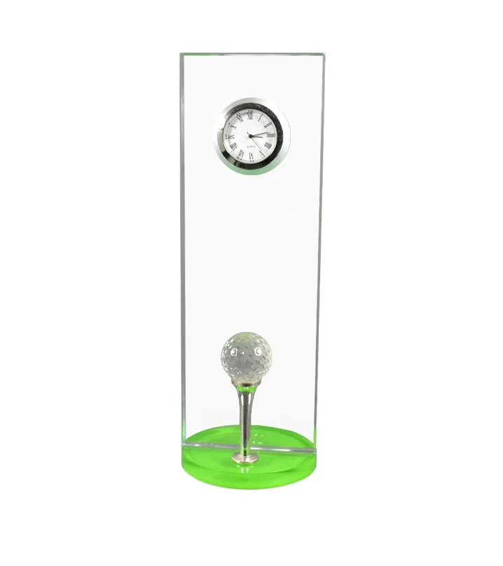 Dieser Uhrenaufsteller besticht durch ein sehr schönes, versilbertes Tee mit einem Kristallgolfball. Der Sockelrondo ist in zwei eleganten Ausführungen erhältlich: KL für Klar oder G für Grün. Der Aufsteller besteht aus hochwertigem Opti-White Glas in 10 mm Stärke und einer Breite von 8 cm.