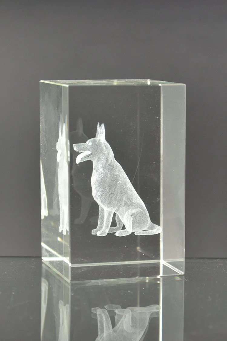 L5501 Schäferhund - 3D Glasquader hoch
